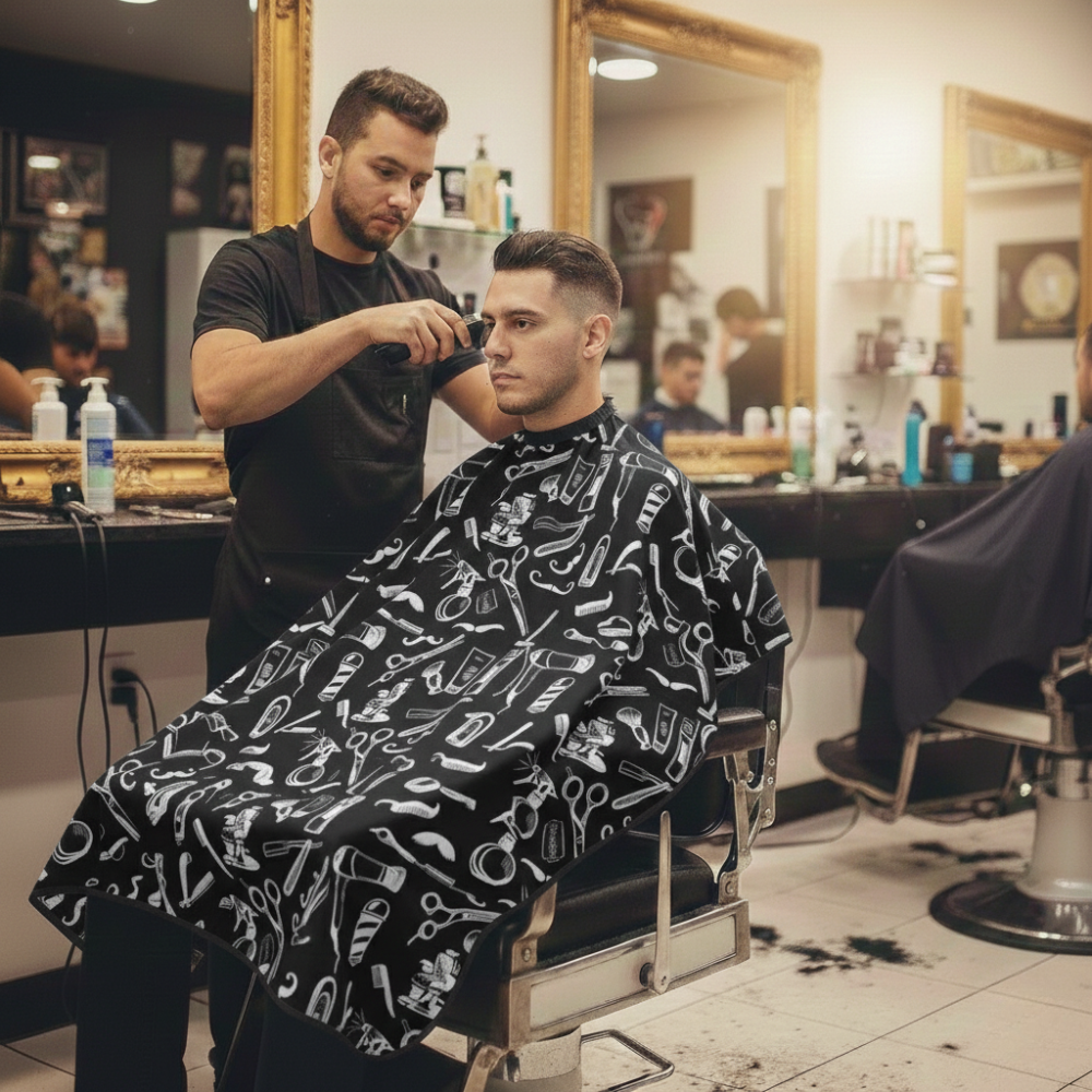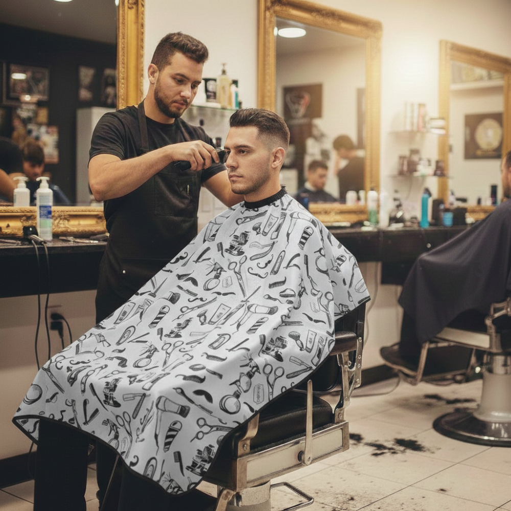 Dale un toque de nostalgia de barbería a tu salón o a tu hogar con el paño de peinado antiguo de Campbell's.Este elegante paño presenta un patrón clásico que muestra herramientas de peluquería,tónicosy peines antiguos,creando un ambiente único para cortes de pelo y peinados.