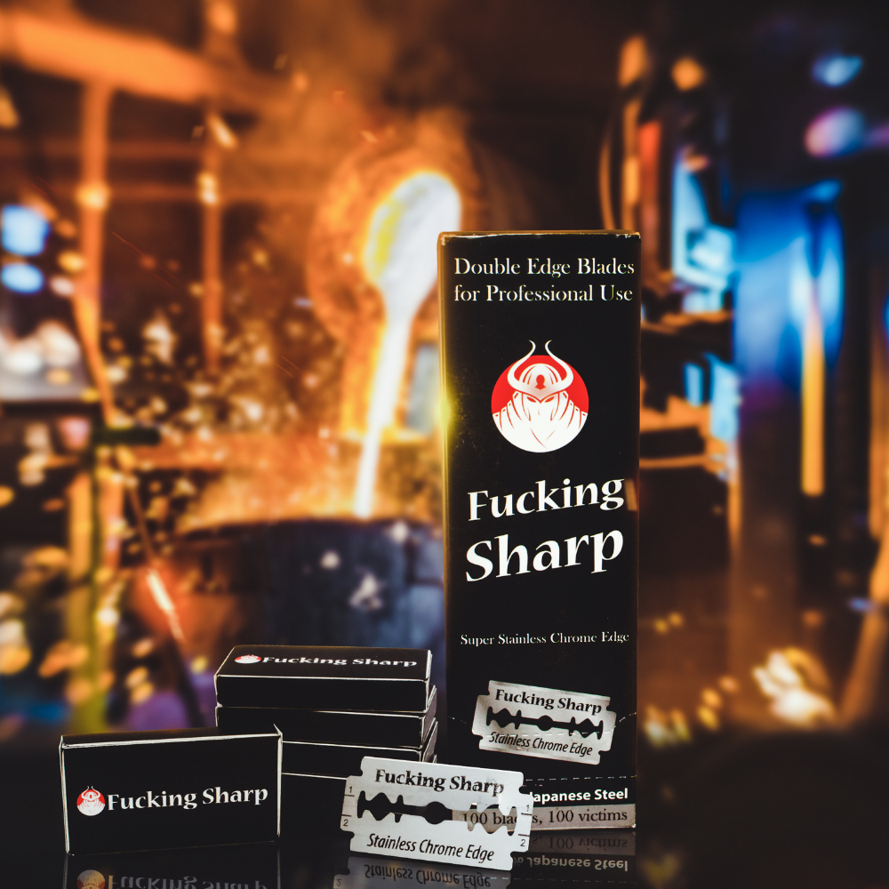 Experience the ultimate shaving adventure with Fucking Sharp Double Edge Razor Blades. Made from 100% Japanese Steel, these blades offer a super stainless chrome edge for a bold and precise shave. Be daring and take on the toughest facial hair with confidence!