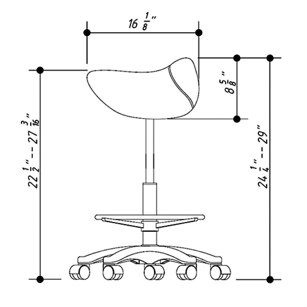 The "HERMES" saddle stool adds a little flare to the traditional stool. Its unique ergonomically designed seat allows for better posture and less fatigue. This versatile stool has an adjustable footrest ring making it easy to use by hairdressers or clientele. The stool features a large diameter star base for stability not allowing for stool to tip over easily and a handle for easy maneuvering.